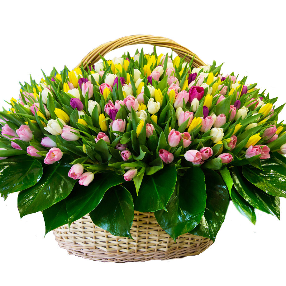 MIX из 201 тюльпана в корзине